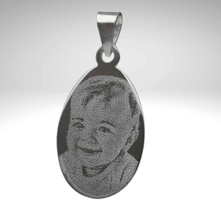 Colgante Placa Ovalada Pequeña con Fotograbado 21x14 mm